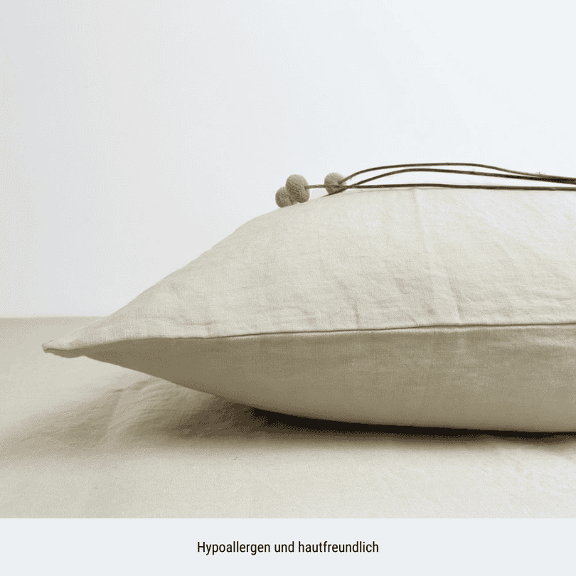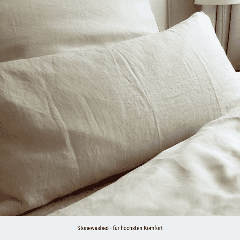 Unsere Bettwäsche ist aus vorgewaschenem Leinen gewebt und nach dem Standard 100 by OEKO-TEX® Zertifikatsnummer 6760CIT CITEVE zertifiziert. Das hochwertige Gewebe überzeugt durch seine fühlbare Premiumqualität und die seidig schimmernde Oberflächenstruktur. Den Unterschied kannst du deutlich spüren. Der Stoff fühlt sich besonders weich und anschmiegsam auf der Haut an.