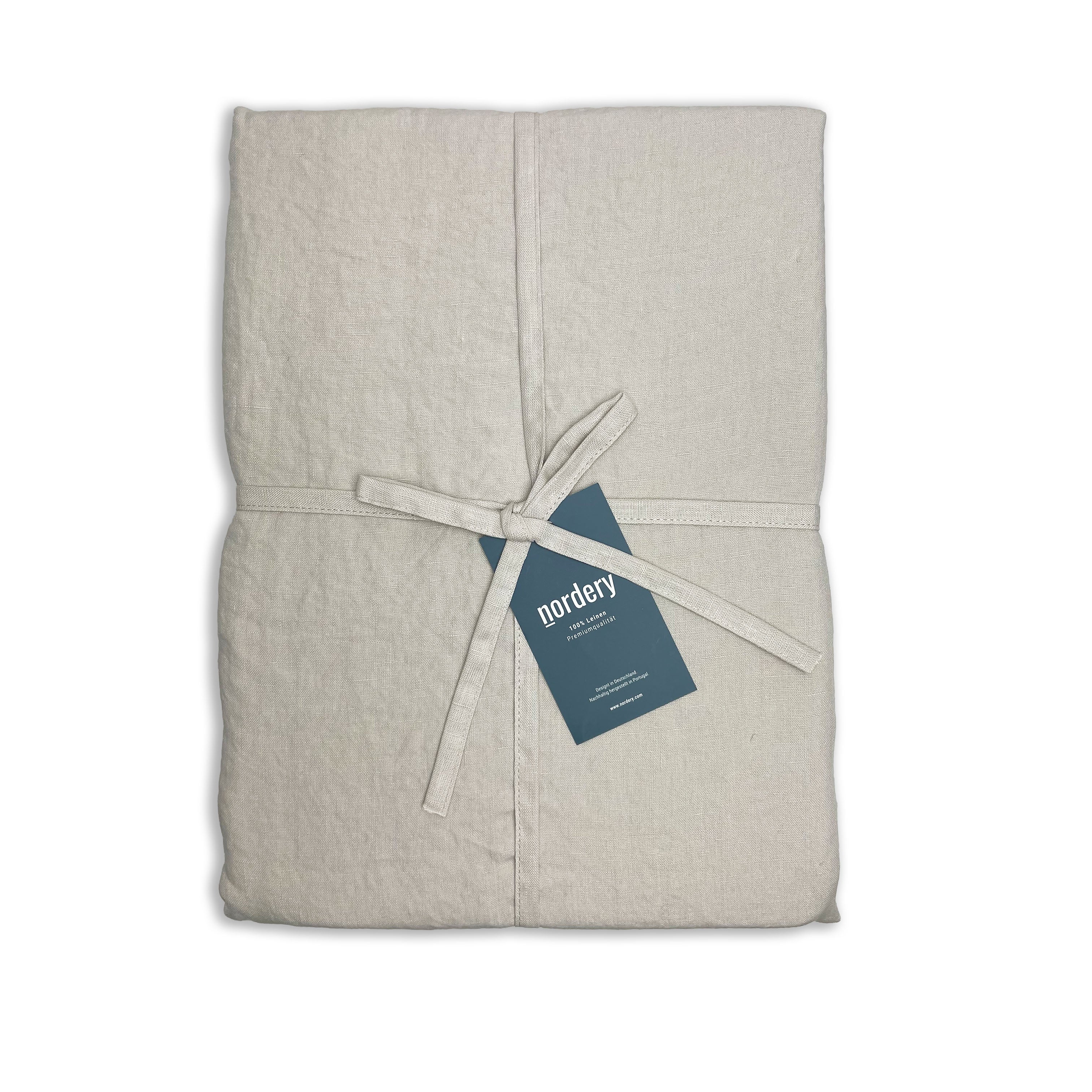 Machine wash at max. 40 degrees Celsius on a gentle cycle at max. 600 rpm. Smooth out when damp and hang up to avoid creasing. Since it is natural linen, creases can form after washing and drying, which are completely natural and also give the fabric its typical look. Ironing is not necessary. You can find more information about proper care in our   care instructions .