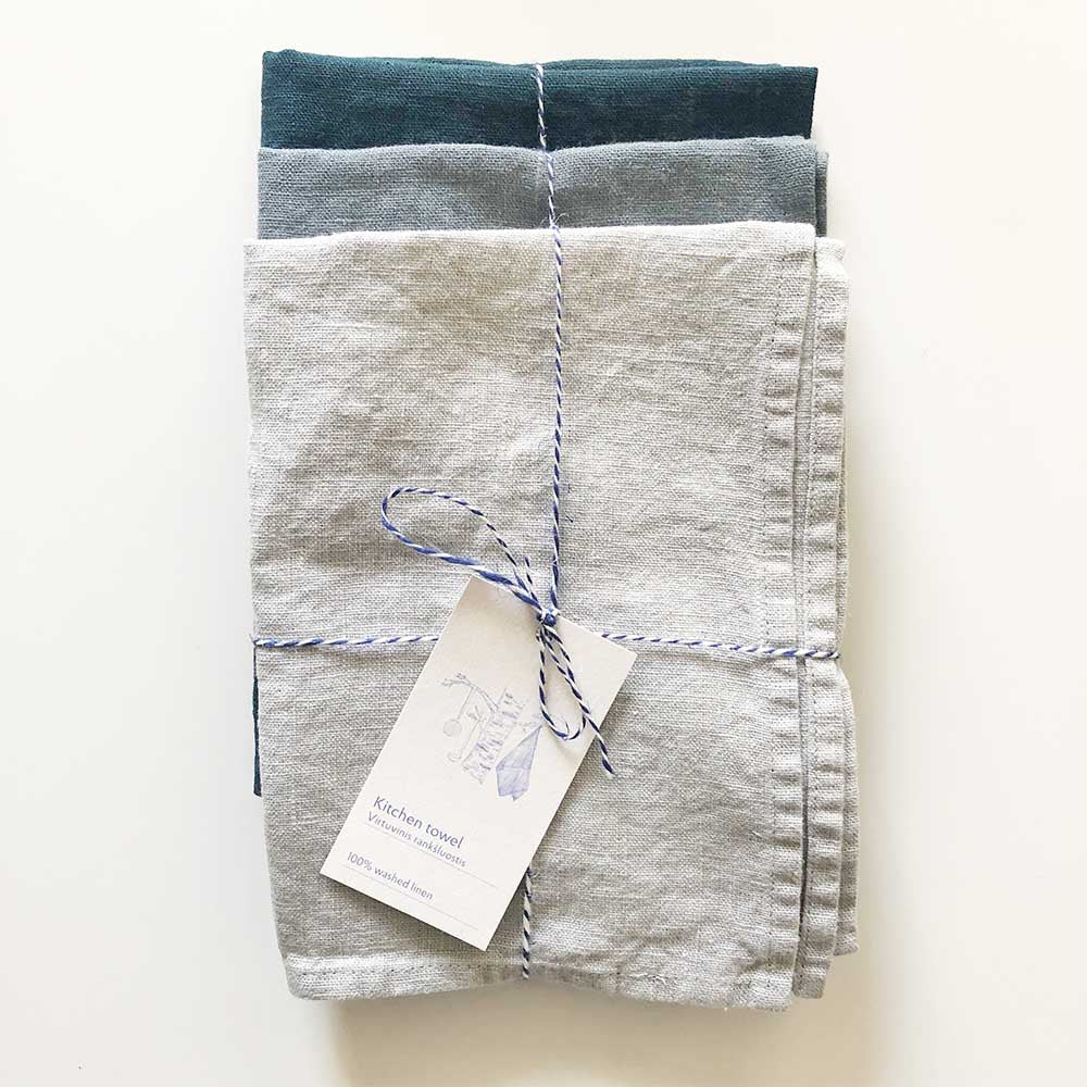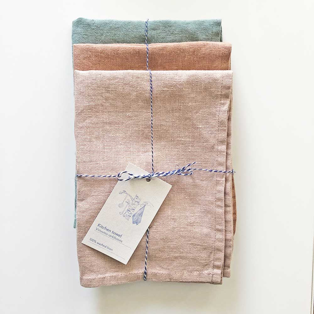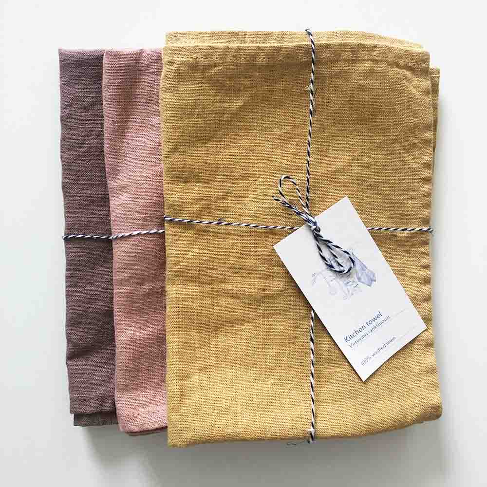 Gift box linen tea towels "Pastel Dreams" set of 3