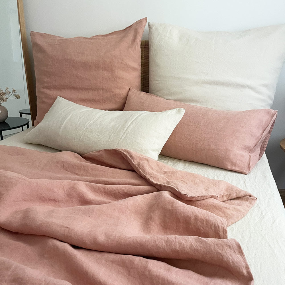 Our bedding is woven from pre-washed linen and after STANDARD 100 by OEKO-TEX® certified. The high-quality fabric impresses with its tactile premium quality and the silky, shimmering surface structure. You can clearly feel the difference. The fabric feels particularly soft and cuddly on the skin.
