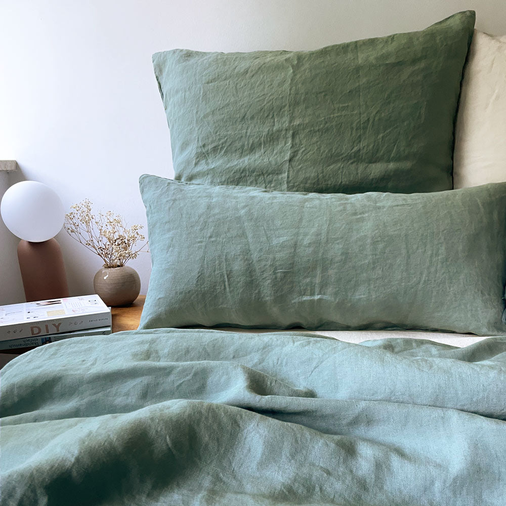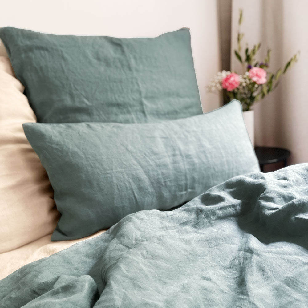 Joan is an elegant gray-green that can vary from a soft sage-green to a rich blue-green depending on the light. Bed linen is already a real classic for us!