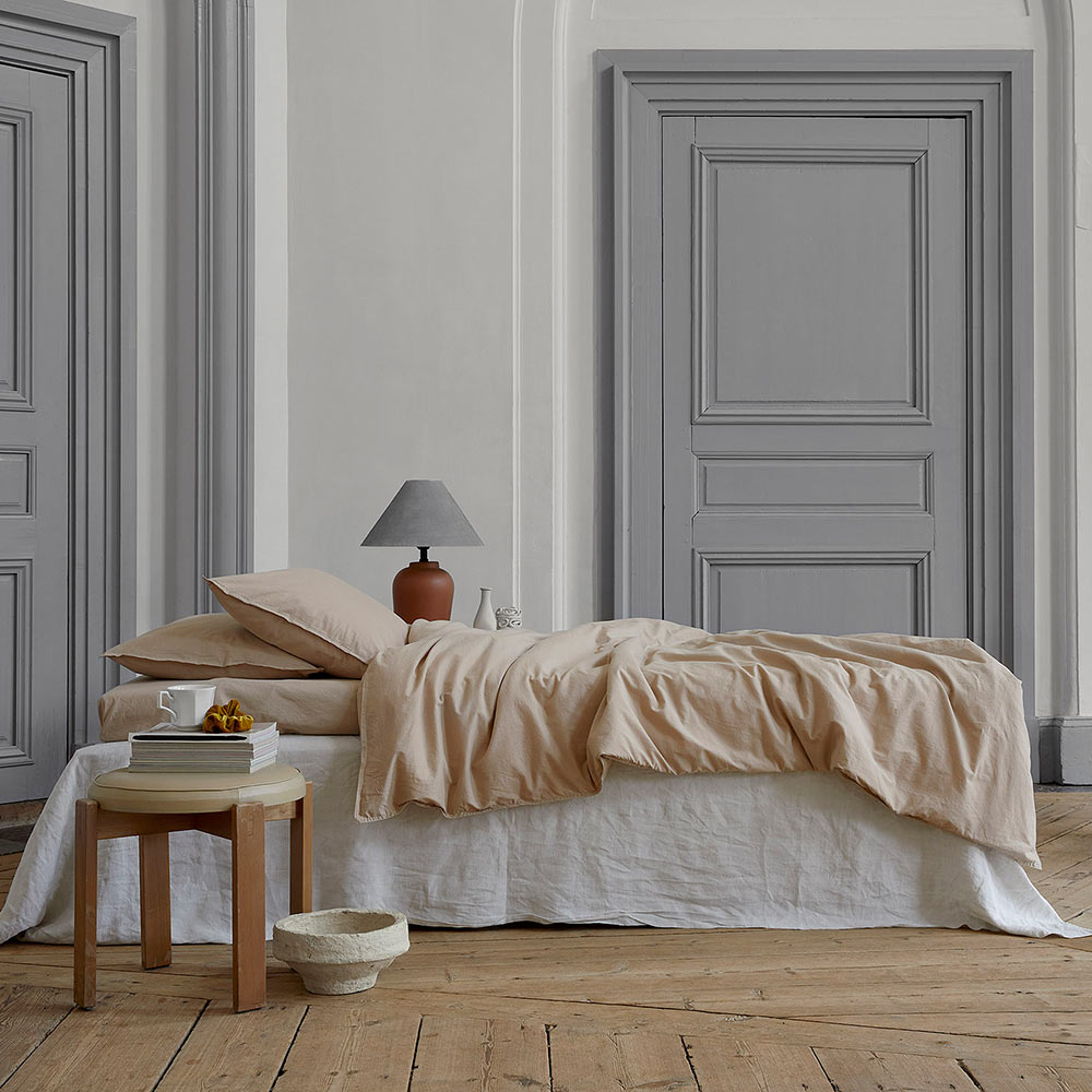 Midnatt released the color "Hassel" in a limited edition. The sand-warm shade brings calm and balance to your bedroom and harmonises perfectly with all the other colors from midnatt. This special edition has the same cotton quality as the standard collection, but with a simple wash that gives the fabric a more natural texture. We call it the "bohemian linen look". The high-quality organic cotton is temperature-regulating and pleasantly warm in winter or slightly cool in summer. The pleasantly soft structure of the material feels wonderfully soft on the skin.
