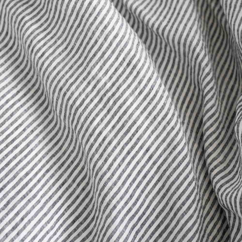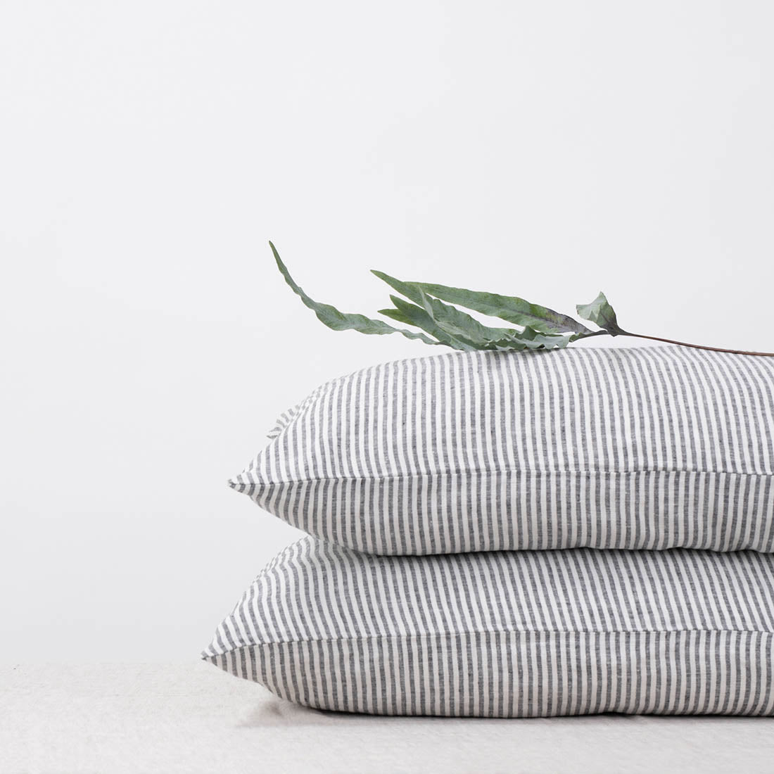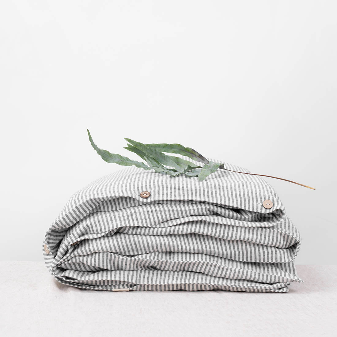 Leinen zählt zu den nachhaltigsten Naturmaterialien: Beim Anbau werden keine Pestizide oder Chemikalien eingesetzt, und der Wasserverbrauch ist deutlich geringer als bei Baumwolle. Für das Set „Thin Black Stripes“ wird ausschließlich European Flax® und nach STANDARD 100 by OEKO-TEX® zertifiziertes Leinen verwendet – für höchste Qualität und eine ressourcenschonende Herstellung in Europa. Jedes Set wird in Litauen sorgfältig von Hand gefertigt – mit Liebe zum Detail. Die Bettwäschesets sind in weiteren Farben erhältlich.